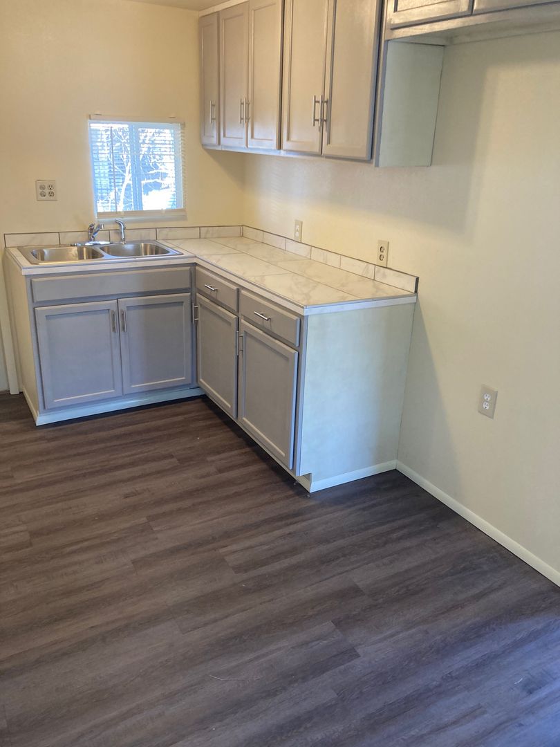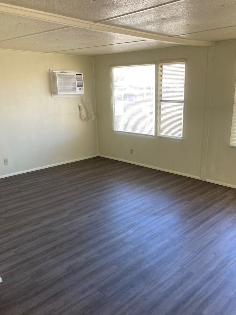 This spacious 2 bedroom 2 bathroom mobile in Lake Isabella was recently refurbished with new cabinets, flooring, plumbing fixtures, paint and appliances. The property boasts a fully fenced yard, mature shade trees, stove, and A/C. One small pet is allowed with an additional deposit. Tenant pays all utilities.